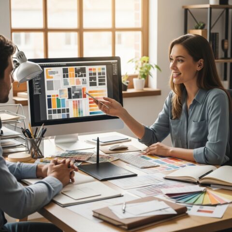 Organização e identidade para ambientes internos e externos com sinalização profissional e materiais promocionais.